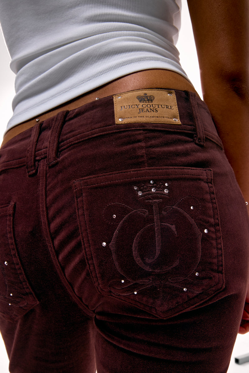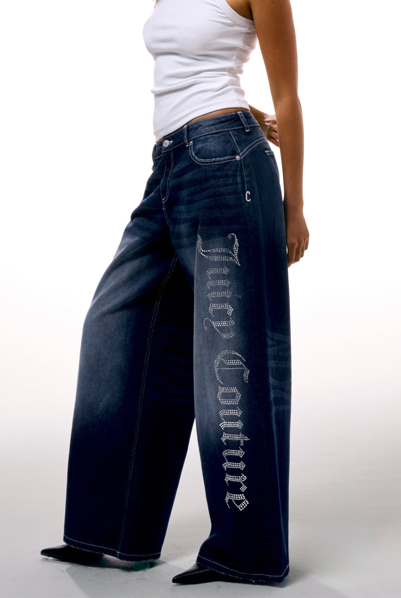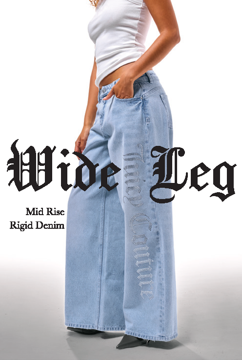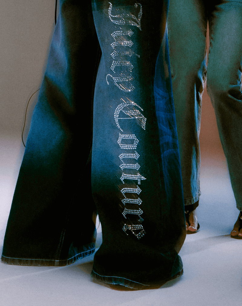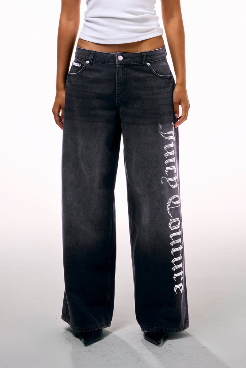 Cut wide from the hips down to the hem, our wide leg jeans offer a flattering, elongating effect. Comfortable & relaxed, a sprinkle of diamantés add a flare of Juicy DNA.