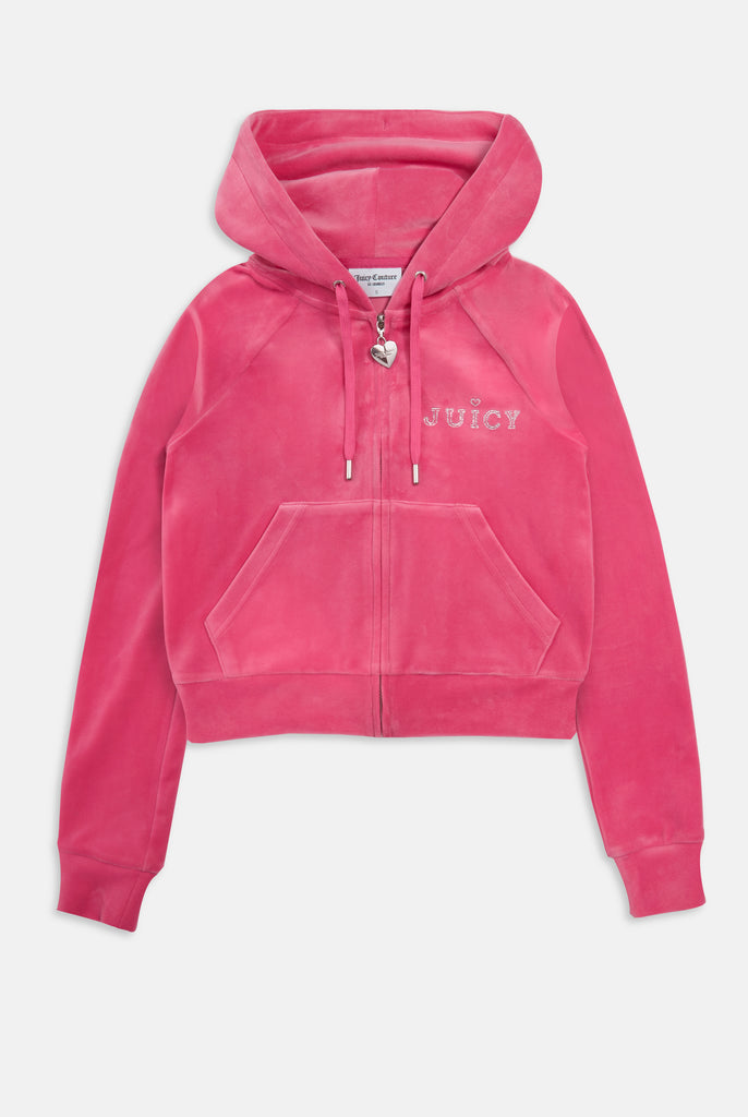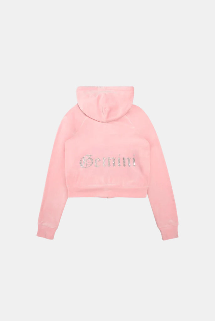DIAMANTE VELOUR ZIP-THROUGH HOODIE